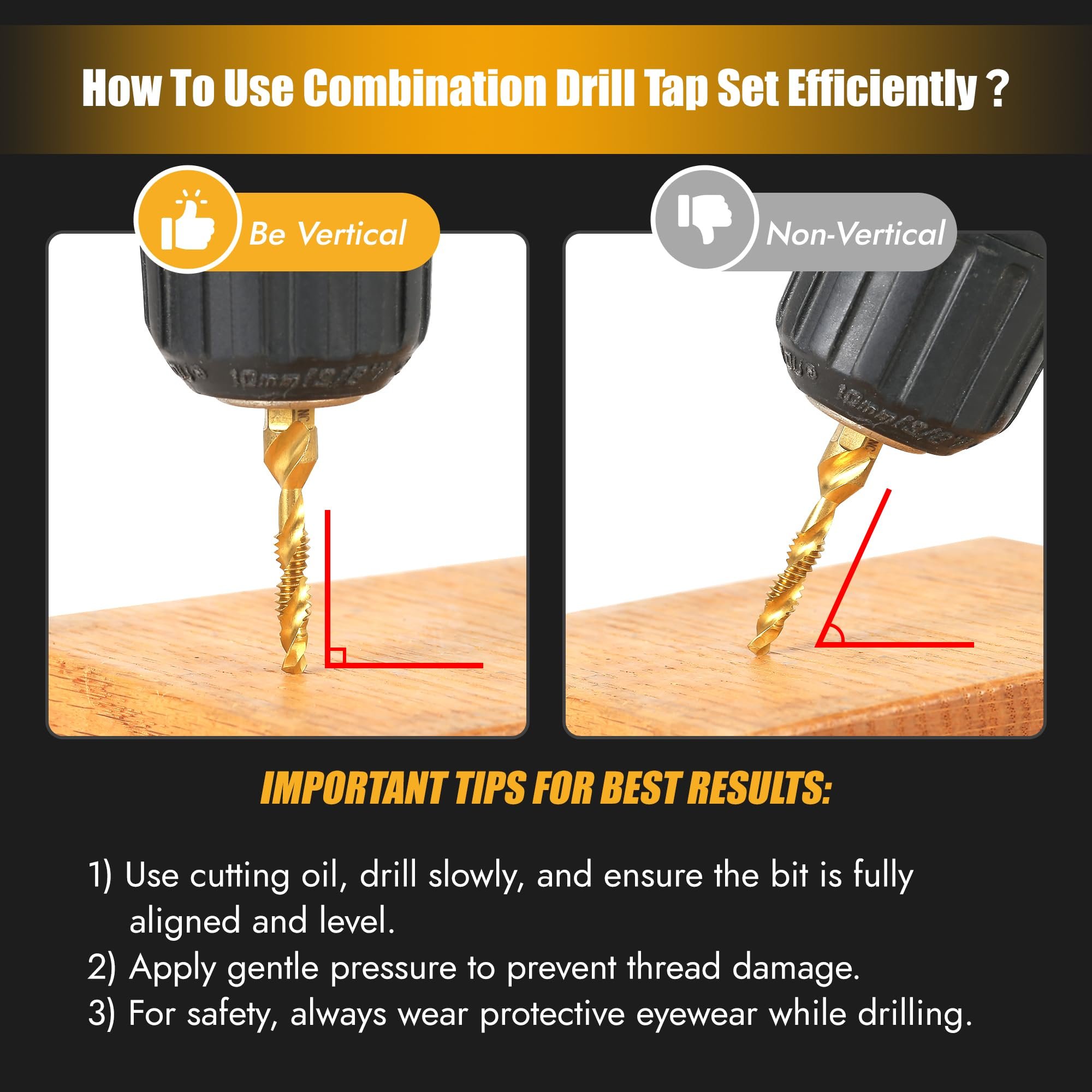 Perfect for threading and drilling in wood, plastic, aluminum, and other soft metals. A versatile solution for home repairs, automotive work, and industrial projects.